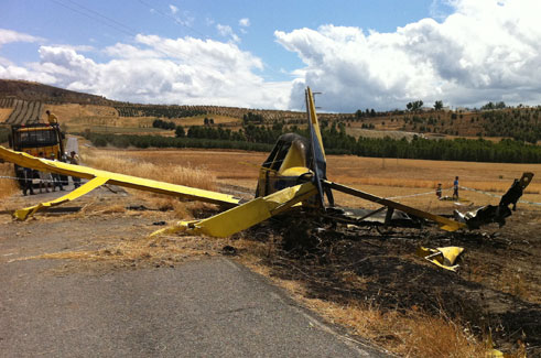 Tras el accidente, se ha producido un incendio ya extinguido por un operativo del Infoca movilizado tras la caída de su avioneta que ha resultado calcinada casi íntegramente.