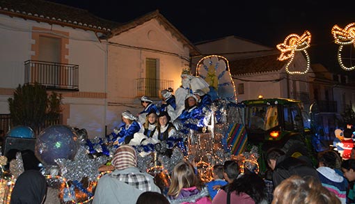 Entre música, juegos, la actuación de gigantes y personajes del mundo de la ilusión y fantasía y el meritorio trabajo de los miembros de Protección Civil, trascurrió el itinerario previsto desde el lugar del encuentro hasta el desenlace en el ayuntamiento, lugar en el que los magos de la ilusión desde el balcón saludaron al público que esperaba el saludo y los caramelos, chuches, balones y otros juguetes, como preludio a los que irán dejando en las casas de nuestro pueblo.