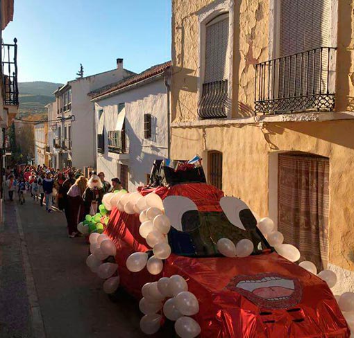 El cortejo que acompañaba a sus Majestades de Oriente, estaba formada por tres carrozas. A su paso repartieron buenos deseos para la Villa de Jayena, y entre todos los asistentes caramelos sin gluten y sin azúcar y de pequeño tamaño, para evitar incidentes. Fueron 200 kilos de caramelos, 100 balones además de otras tantas chuches variadas, a todos los niños de Jayena que con ilusión esperaban este momento.