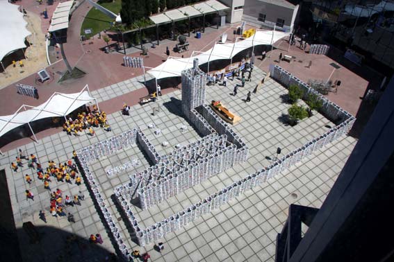 Pero se pudo conseguir el Record Guinness a la mayor construcción del mundo hecha con bricks, con unas dimensiones de 35x15 metros de ancho y largo y 7’5 metros de altura, el esfuerzo colectivo de escolares de toda la provincia, docentes y alumnos de la Escuela de Arquitectura, ha logrado este record mundial