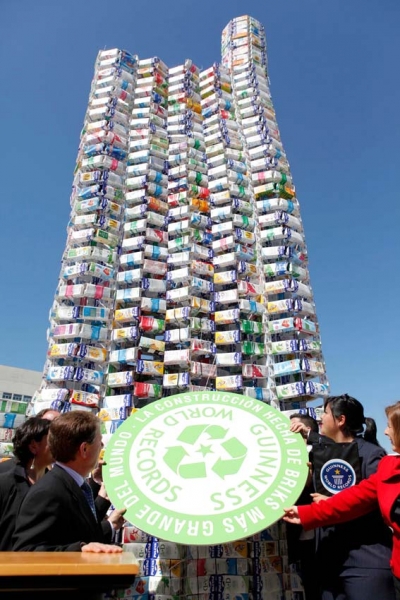 Auspiciado por el Consorcio Provincial de Tratamiento de Residuos Sólidos Urbanos, RESUR, y la Diputación de Granada y gracias a la ilusión y el esfuerzo de más 5000 escolares de toda la provincia que han conseguido reunir más de 65.000 envases de bricks y al equipo docente y del alumnado del primer curso de la Escuela Superior de Arquitectura de la Universidad de Granada que han sido los responsables de diseñar y construir el proyecto, las juezas llegadas desde de las oficinas de Londres de Guinness World Records daban esta mañana fe de la consecución y validez del logro: la mayor construcción del mundo hecha con bricks.