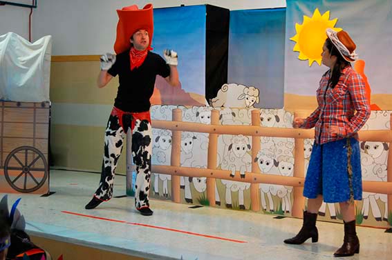 Una obra de teatro en inglés del lejano oeste con indios y vaqueros. Los pequeñitos habían preparado con cariño la obra e iban ataviados con sus plumas de indios al más puro estilo carnavalero. Todos corearon las canciones y, entre risas y aplausos, pasaron un buen rato practicando sin darse cuenta “listening & speaking” como en clase pero de la forma más divertida.