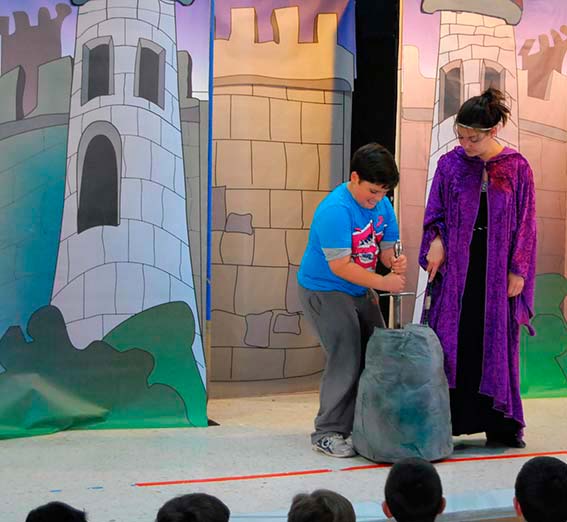 “THE LEGEND OF KING ARTHUR” con caballeros medievales, bruja, princesa, una espada y la participación de todos los asistentes cantando, gritando y divirtiéndose mucho. Tanto el alumnado como adultos que asistimos nos reímos un montón. Hicimos sin pensar una clase en inglés interactiva y llena de actividades de comprensión, escucha, respuestas orales y práctica de la lengua extranjera que se estudia a diario.
