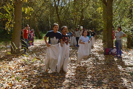 La jornada en el Motor comenzaba con el primero de los planes que era jugar en los distintos talleres que se habían organizado, talleres tan tradicionales como carrera de sacos, sokatira, correr por parejas con las piernas atadas, la gallinita ciega, juego de las manzanas, al pañuelo, descubre qué fruto es, reloj- reloj, salto de la comba, etc