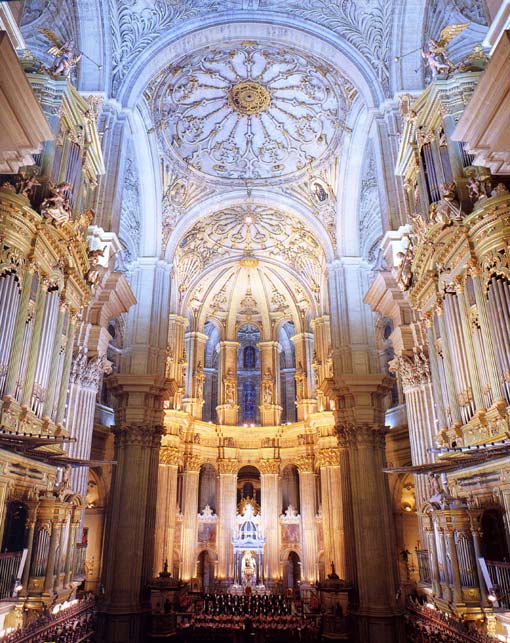 | Hacia mediados del siglo XVI es cuando puede decirse que se inicia, con decisión, la construcción de la Catedral de Málaga, dándose un gran avance en su edificación en la segunda mitad de esa misma centuria. En 1588 se procedió a su dedicación, si bien para entonces el templo solo contaba con la cabecera y crucero, y aún éste sin las portadas exteriores, quedando paralizadas las obras durante ciento cuarenta años, a excepción de la zona del coro que se efectúa en el siglo XVII. | ||
