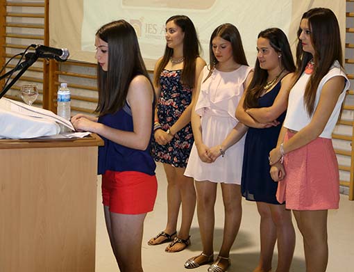 Por parte de los indudables protagonistas del acto, los alumnos, intervinieron Belén Arrabal, Raquel Ramos, Clara Guerrero, Noelia Montero, Alba Moya y José Manuel Giménez para recordar que han terminado la ESO, educación que “nos ha hecho mejores personas” y que el esfuerzo y la voluntad lo consiguen todo, o que “la educación es la llave maestra que abre todas las puertas”. Todos los alumnos tuvieron palabras de agradecimiento para todo el personal de la comunidad educativa.
