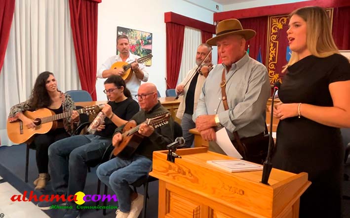 Jesús Ubiña, alcalde de Alhama, agradeció especialmente a Luis y Maribel y destacó que un salón de plenos lleno "se da pocas veces. Reconoció al Patronato como un pilar fundamental de la cultura de Alhama y anunció que van a vincularlo mucho más con el Ayuntamiento y la Consejería de Cultura. Recordó que su madre de 96 años le cuenta que la vinculación con los verdiales viene del intercambio de trabajadores del campo que venían de la costa en verano.