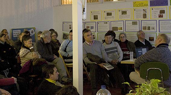 La presentación del contenido del libro por Enrique Tudela estuvo asistida con la proyección de fotos que ilustran la edición, y que a la gente le resultó amena e interesante. Al final hubo un animado coloquio sobre el valor de la memoria de los vencidos, si puede ser considerado historia o no eso ya depende de valoraciones y conocimientos personales, en todo caso no dejó a nadie indiferente.