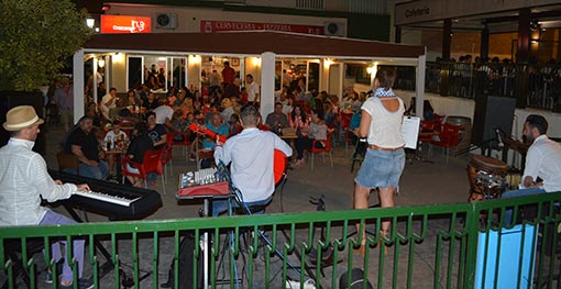 Venidos de Nerja, la noche, fresca casi de más, no molestó a este cuarteto compuesto de guitarra, piano, percusión y voz, para dejarnos un buen puñado de canciones que partiendo de la base del flamenco, no en vano son un grupo de flamenco-fusión, incorpora ritmos latinos, esa “Negra Tomasa” o las “Lágrimas negras” hubieran sido del gusto de Compay Segundo o de Bebo Valdez, con toda seguridad y el resto de repertorio, más flamenco, tangos, sevillanas y bulerías consiguieron que el público disfrutara de una noche intensa de muy buena música, y la tapas y el buen servicio de los bares Cabezas, Ca Manuel y Pastelería Balada, patrocinadores de la noche musical y encargados de aplacar la sed y el hambre de quien allí se dio cita para gozar intensamente de lo que la noche prometía.