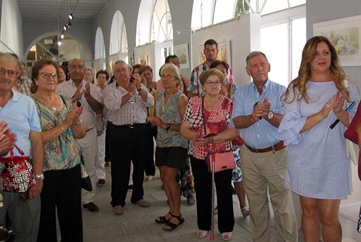 Viernes 2 de agosto, Galería del Patio del Carmen, siete de la tarde; todo preparado para acoger al mucho público que asistió a disfrutar de la obra expuesta de Ana Martínez Serrano, autora que expone por primera vez en nuestro pueblo, haciendo con ello, ella misma lo dijo, realidad un sueño largamente acariciado: el de dar a conocer su obra, parte de su obra, en Alhama, protagonista de gran parte de la misma.