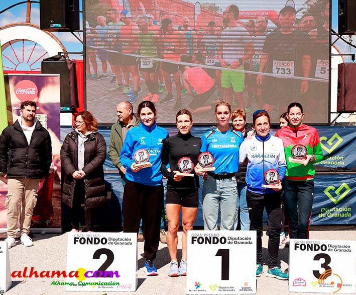 María Peula volvió a ser la corredora más destacada del Alhama Cycling al finalizar en quinta posición en su categoría (Máster A), con un tiempo de 1 hora y diez minutos. Por su parte, la zafarrayera del Club Atletismo Maracena, Inma Toledo, se alzó nuevamente con la primera posición en Máster D y fue tercera en la clasificación general femenina.