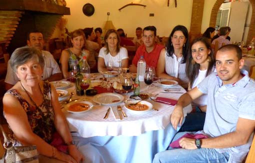 De segundo el salmorejo con su jamón “picaillo”, y huevo, para terminar con un solomillo guisado con patatitas al horno, el postre de la casa, un pudin, que invito a cualquiera que lea esta crónica lo pruebe, luego el café o las infusiones y rematamos la partitura con una copas de cava bien frio y unos pastelitos de “bocado”, deliciosos.