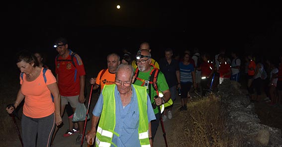 Así, la cuesta del Castillo, la calle Alta Iglesia, Plaza de los Presos, calle Zapateros, Puerta de Granada y finalmente el Carril Bajo en este corto recorrido urbano los vecinos sentados al fresco y la inmensa torre iluminada de la Iglesia Parroquial recortada con el fondo del cielo azul profundo nos despidieron entre asombros y algún que otro aplauso a nuestro paso, para entrar al campo por el camino de Torresolana, las tierras de la zona Noroeste de nuestra geografía local nos esperaban, para dar a los participantes su bienvenida con sus llanos paisajes y sus arraigadas historias.