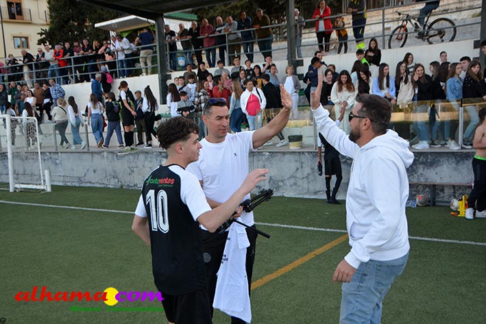 Tras la reanudación Ali enviaba a la escuadra la primera jugada de la segunda mitad. De nuevo Coca de cabeza anotaría el quinto y Yago cerraba el marcador poniendo el broche a un gran partido de los alhameños en general y de él en particular. El numeroso público asistente pudo disfrutar de un encuentro bonito y limpio en el que la deportividad brilló en todo momento. Los alhameños celebraron el ascenso como merecía y terminarán la liga intentando ganar a Montefrío CF y conseguir el campeonato de liga.