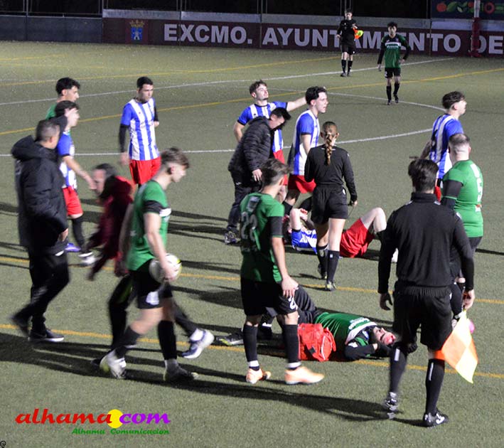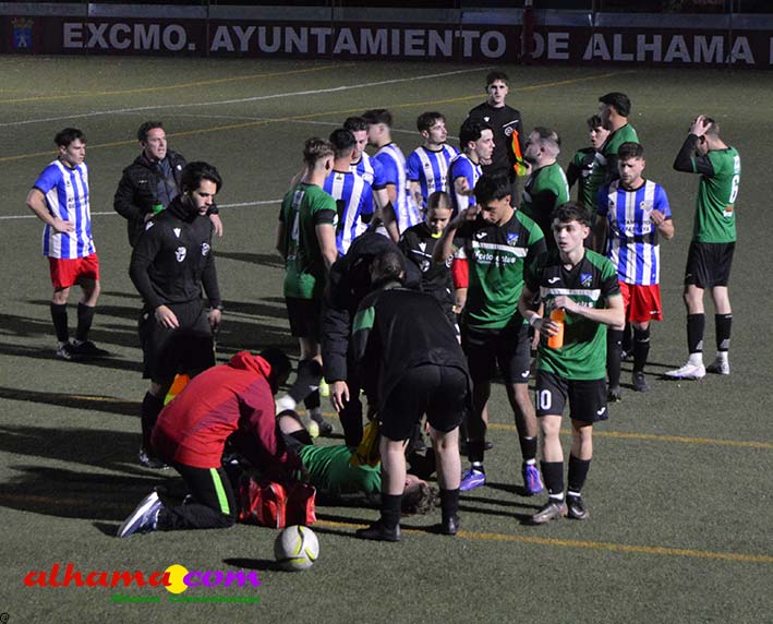 Al igual que en la primera parte el encuentro tuvo su nota gris con la lesión del portero del Comarcal tras un choque. Destacar el trabajo del Presidente de la UD Alhameña, José Miguel Valderrama, que puso su vehículo a disposición de los lesionados para trasladarlos al centro de salud.