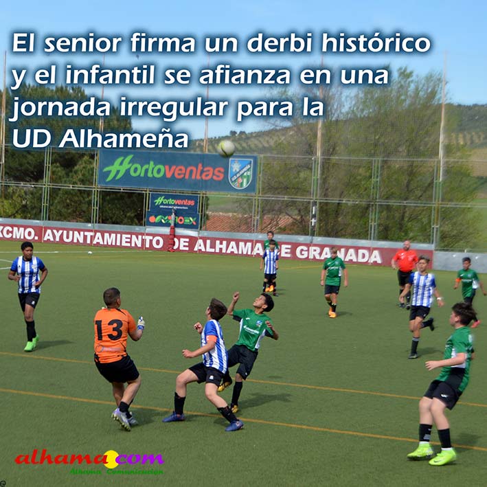 La UD Alhameña vivió un fin de semana marcado por el triunfo del equipo senior en Zafarraya, con el que cierra la temporada sin perder ningún derbi, y por la victoria del infantil, que se consolida en la zona alta. Benjamines y alevines no pudieron sumar en sus compromisos, en una jornada irregular para la cantera alhameña.
