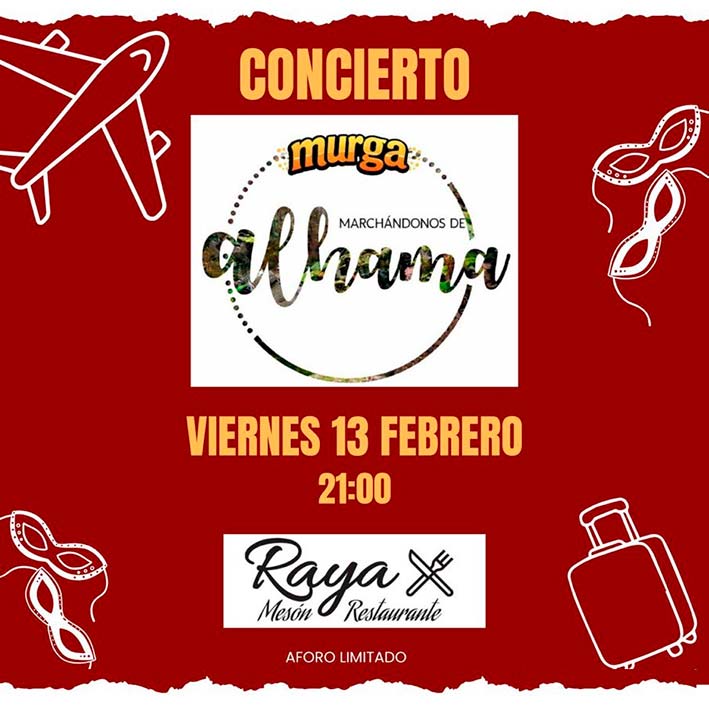 Así que ya lo saben: los días 15, 16, 17 y 22 de febrero, alhameños y visitantes quedan invitados a disfrutar de lo que posiblemente sea la agrupación más irreverente de nuestro Carnaval, aunque antes, el vienes 13 de febrero actuarán sobre las nueve de la noche en el Bar Raya para dar el pistoletazo de salida al carnaval, así que no le dudéis e ir a escuchar a esta murga porque luego quizás se marchen de Alhama.