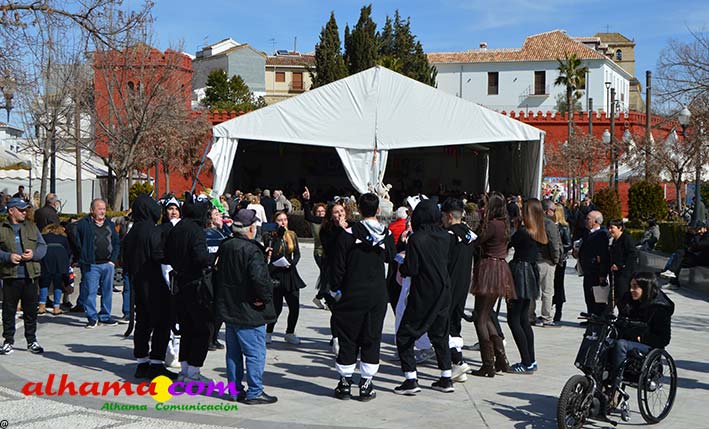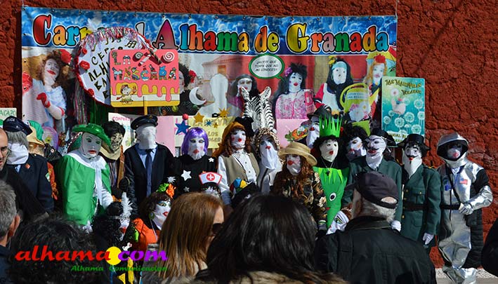 Tras el paso de las distintas borrascas que también en Alhama ha dejado numerosos desprendimientos, tanto en el centro de la localidad como en los alrededores, los alhameños tenían gana de fiesta. Máxime cuando precisamente por el temporal se ha tenido que aplazar hasta el 28 de febrero, la XIII Fiesta del Vino que le está haciendo sombra al Carnaval, en lo que a visitantes se refiere. En cualquier caso, pese a ser un carnaval tempranero, pues hace solo un mes y medio estábamos comiéndonos las uvas, las murgas y comparas habituales y los amantes de la máscara, han preparado todo para disfrutar los tres días de carnaval y su colofón, el domingo de Piñata (22 de febrero). Para ello, ha sido fundamental el amor que los alhameños sienten por su fiesta más emblemática reconocida en diciembre de 2009 como Fiesta de Interés Turístico de Andalucía. También la labor de la recién creada asociación carnavalera, 'Uy su torpe' que ha impartido talleres de máscaras en los centros educativos y de Alhama Comunicación que, como en la pasada edición ha realizado varios vídeos presentados por Pedro Martín y grabados en los propios locales de ensayo de los distintos grupos, concretamente, Las Maripilis, Las Nenas, El pitorreo (20 aniversario), Los Gatos del IES Alhama y Los Gorriones que, entre todos, se acercan al centenar de personas implicadas.