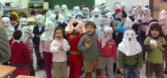 La casualidad ha hecho que precisamente hoy sea también cuando el Ayuntamiento y el propio centro han llevado a cabo el tradicional taller de máscaras que se hace todos los años, y en el cual, un personaje conocido de nuestro carnaval, en este caso, Jerónimo Gómez Ochoa, enseña a los niños a fabricar máscaras de trapo, totalmente artesanales.