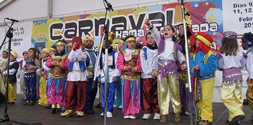 Tras la gente de “Como los chorros del oro” ocuparon su lugar en el escenario alumnos del Segundo ciclo del Cervantes, también vestidos de árabes para la ocasión; a los que siguieron, continuando con gente del cómic los Zipis y Zapes del segundo ciclo de Conde de Tendilla, que para la ocasión se portaron mucho mejor que sus homólogos del tebeo de nuestra infancia y estuvieron a la altura de nuestro Carnaval infantil de Alhama.