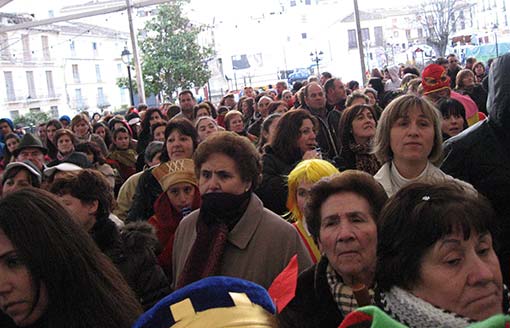 A la hora prevista, las cuatro de la tarde del lunes 11 de febrero de 2013 la pareja de presentadores de esta edición de nuestro Carnaval infantil, Javier, director del Conde de Tendilla y Ester, maestra del Cervantes daban la bienvenida al numerosísimo público asistente y a todos los participantes. Para que quede constancia decir que Javier iba disfrazado de Nick Furia de los Vengadores, personaje de comic y Ester vestía para la ocasión de dama de le Edad media, según creo.