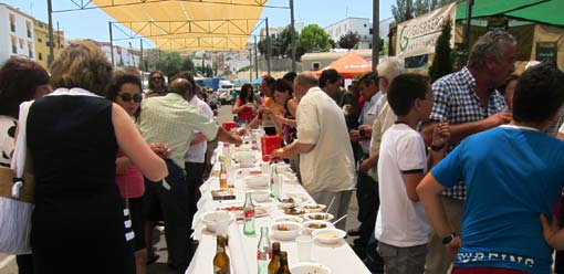 Una vez que llegó el mediodía, los alhameños y visitantes, disfrutaron de una degustación gratuita de choto, cordero y patatas con peras, organizado por la empresa 'La Barrica'. En total se repartió comida para unas 1200 personas. Tras la suculenta comida, y ya cayendo a última hora de la tarde, se mostró un espectáculo ecuestre a cargo de la peña ecuestre de la localidad. Éste consistía en una exhibición de enganches, doma de alta escuela y doma vaquera.