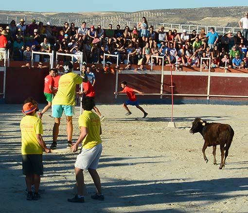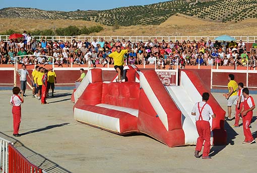 Las pruebas eran de obstáculos basadas en juegos populares, otras eran pruebas de carácter físico y, por supuesto, el gran punto cómico y atrayente fueron las pruebas con vaquilla que pusieron a prueba la pericia y la valentía de los jóvenes participantes.
