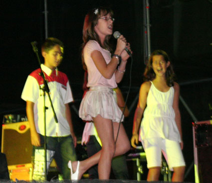 02/08/2008.- La 43º edición del Festival de Andalucía estará marcada por ser la primera vez que los protagonistas infantiles participaron de ella. Hacía tiempo que no se recordaba una expetectación tan marcada en el evento. Los niños y sus monitores realizaron el milagro, tras un mes de preselección, ensayos y semifinal llegó el exprimento; incluir a los chavales en la apertura del veterano festival. Y funcionó. Funcionó de tal manera que, a petición popular, hubo que abrir el acto con la canción conjunta que habían preparado todos con a sus mitores, y que habían cantado en la semifinal la semana anterior. Luego llegarían las interveciones de las tres finalistas, clasificadas en la semifinal que tuvo lugar el pasado 25 de julio, y llegarían con la espontaneidad de Ángela Arrabal Bastida, una niña de 7 años que hizo a todos animar la fiesta con... "¡esas palmitas!", interpretando "Buena bonita y barata" de, según ella uno de sus artitas favoritos, "El Barrio". Más tarde llegarían Noemí López Moya, con "Cuéntame al oído" de la "Oreja de Van Gogh" y Alba María Palma Olmos, con "EL sol no regresa", de la "Quinta estación", de diez y once años respectivanete, dos chicas que empiezan a descubrir el mundo, y que con soltura, simpatía y algo de nervios supieron enfrentarse a la marea humana que tenían delante, defendiendo sus temas ante un público sorprendido por la calidad de la puesta en escena que había preparado la organizacion.