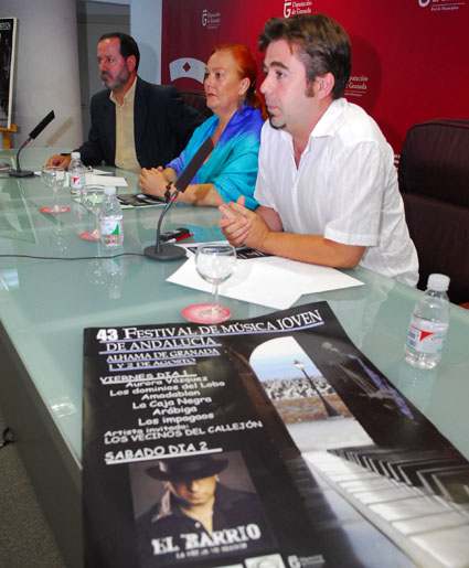 29/07/2008.- Tal y como estaba previsto la sala de prensa de la nueva sede de la Diputación Provincial, sirvió como escenario para la presentación de la 43º edición del Festival de Música Joven de Alhama de Granada. El acto estuvo presidido por la Diputada de Cultura y Juventud, María Asunción Pérez Cotarelo. Junto a ella estuvieron el Delegado Provincial de Cultura, Pedro Benzal, además del Concejal de Fiestas y director del Festival, Javier Molina Castañeda, con unos minutos de retraso, se incorporó Olga Manzano Coordinadora del Instituto de la Juventud de Granada. Todos coincidieron en la veteranía de este evento musical y la magnífica oportunidad que brinda para deleitarse con la visita a nuestra ciudad.