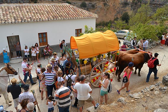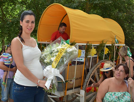 Antes de iniciar el recorrido el concejal, Rafael Ochoa, procedió a la entrega de un jamón a cada una de las quince carrozas participantes tras lo que se dio la salida de la romería que, por segundo año consecutivo estuvo precedida por el carro de bueyes procedente de Alcaucín y tamborilero.