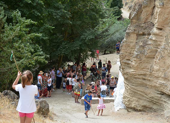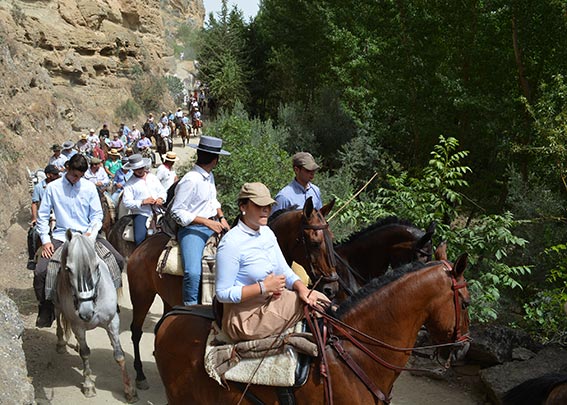 Igualmente se realizaba un doble recorrido pues las carrozas se dirigieron al Motor por la carretera de Vélez-Málaga hasta el cruce de Játar y la Huerta Cañón en tanto que los caballistas y varias decenas de personas lo hicieron andando por el camino de los Ángeles para disfrutar del paisaje con paradas en el puente del Callejón, cortijillo Ponche, ermita de los Ángeles donde se hizo entrega de un ramo de flores, y, tras cruzar el río, en el paraje del Chiringuito Perrute. Ya en el Motor los asistentes contaron con la actuación musical del Grupo Flamenco Kalandraque y la tradicional degustación de olla preparada por Manolo García 'El Tanero' con 75 kg de garbanzos donados por la Cooperativa los Tajos, 30 kg de panceta salada, 15 kg de corazones, 20 kg de costilla, 22 gallinas, 5 kg. de huesos añejos y un kg de tocino añejo.