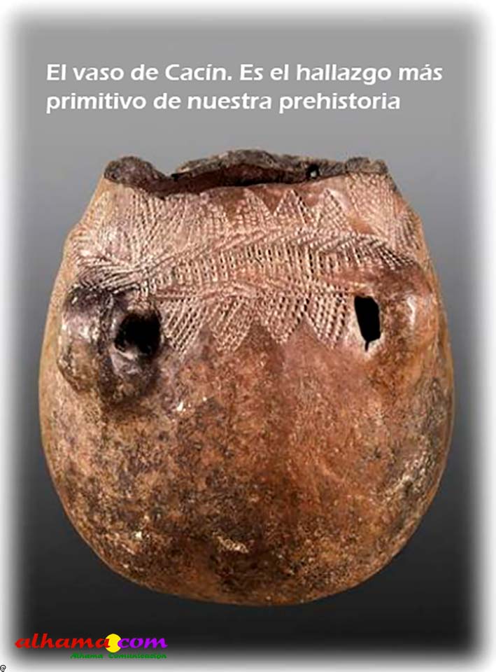 El vaso de Cacín. Es el hallazgo más primitivo de nuestra prehistoria. Así se conoce popularmente este vaso u olla, actualmente expuesto en el Museo Arqueológico de Madrid, e icono que forma parte del escudo del Pueblo. Consideramos que es el documento arqueológico más relevante de la prehistoria de Cacín.