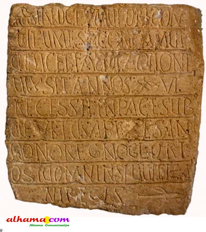 “Una inscripción visigoda de carácter funerario se ha hallado en Cacín. Corresponde cronológicamente al reinado del rey Witiza. Procede de una colección particular, descubierta de una manera fortuita en la década de 1970, durante las obrasdereforma de una casa sita en el casco antiguo del pueblo. La pieza se encontraba incrustada en el interior de unapared medianera en un conglomerado de tierra y yeso.