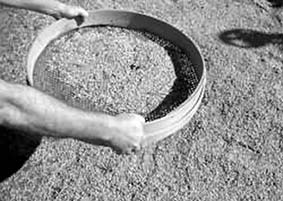 Pero la casa precisa mucho más que las faenillas de María. Y lo más duro queda para su madre que, nada más acabar de comer, tiene que volver a ponerse en marcha. Y ahora tendrá que lavar, y tendrá que planchar, y tendrá que… Y tendrá que limpiar el saco de espigas que hoy ha traído. Una espuerta grande, una maza de majar esparto y una acriba son sus aperos. Y con un poco de viento que siempre corre en la puerta, Encarna va transformando aquel saco de espigas en unos cuantos kilos de trigo.Y mañana será otro día como hoy; y, si hay suerte, también pasado mañana. Y otro día, en vez de trigo, serán garbanzos. Y Encarna mira una y otra vez el saco del trigo limpio, y el de los garbanzos; y echa cuentas. A lo mejor cuando acabe la temporada podrá comprar alguna ropilla a los niños, o cambiarle al panadero el trigo por unas fanegas de vales. Y con los garbanzos piensa tener la olla asegurada todo el año. Es verdad que algunos no son muy tiernos, pero con el bicarbonato se ponen como las gachas. Los del último día siempre se los da a los niños para que los cambien por tostados: “angelicos, otros gustos no puedo darles.”