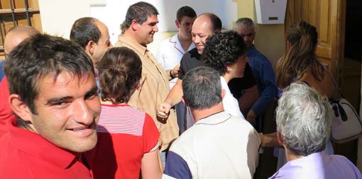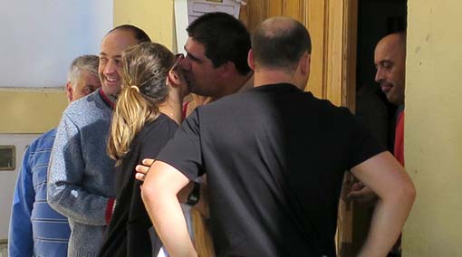 En el centro los estaban esperando como corresponde, les hicieron el pasillo con el arroz preparado y volvieron a escucharse los vítores de ¡vivan los novios!. Todo fueron besos y abrazos en una cita a la que los novios llegaron con un arsenal de regalos, viandas y chuches para pasar una mañana compartiendo su felicidad con quienes reparten afecto. ¡Que se besen, que se besen!, toda una repetición de la ceremonia con discursos que volvieron a emocionar en algún momento a los novios y que les hicieron pasar unos momentos muy entrañables.