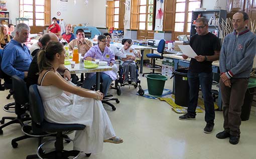 Así pues, este martes, y antes de iniciar el viaje de novios, la celebración volvió a repetirse en este centro, una celebración a la que nadie más estaba invitado, porque estaba reservada para estos amigos de los novios, pero en la que nos colamos abusando de la amistad, y porque estos gestos no pueden pasar inadvertidos, entre otras cosas porque dan testimonio de la valía de las personas.