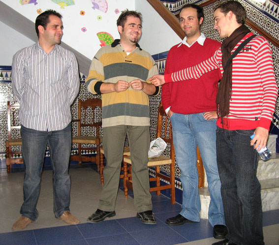 A Miguel Ángel no le importó echar por alto el viaje que tenía que iniciar a las dos por proseguir su estancia con los ancianos, y así, a las dos y media, tras ser despedido por los concejales que le acompañaron en el recorrido volvía a su cas de El Almendral, en la compañía que había llegado, su padre y la concejala Pili Castillo.