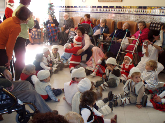 Los alumnos de la Escuela Infantil Municipal de Alhama visitan la residendia-hogar. Fue el pasado viernes, 19 de diciembre, cuando se volvió a cumplir la tradición; los más pequeños del pueblo visitaron por Navidad a nuestros mayores.
