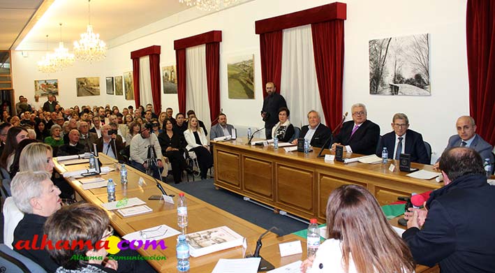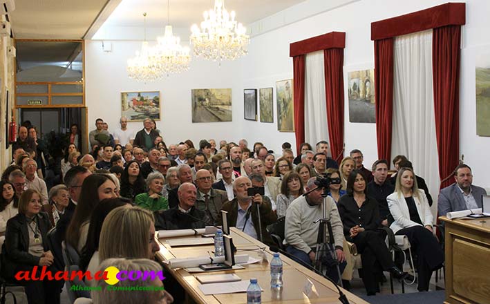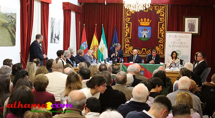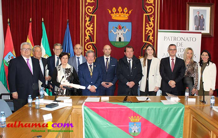 Una vez más se puso de manifiesto que Alhama necesita un espacio cultural con más capacidad pues el salón de actos del consistorio volvió a quedarse pequeño y fueron muchos los asistentes que tuvieron que seguir la gala de entrega de los premios organizada por el Patronato de Estudios Alhameños con la colaboración del Ayuntamiento, o bien de pie o desde el exterior. La historia volvió a repetirse en la noche del viernes con motivo de la 34ª edición de estos edición que desde sus inicios vienen reconociendo al alhameño/a del año, a la mejor labor en favor de Alhama para un residente y para un no residente, mejor labor de difusión y mejor expediente académico, a los que en ediciones posteriores se han sumando el premio comarcal del año a partir de 2007 y el oriundo de Alhama, a partir de 2013. Todos recibieron las felicitaciones del alcalde de Alhama, Jesús Ubiña, presidente actual del Patronato, Raúl Gálvez y presidente de honor, Andrés García Maldonado, quien manifestó con satisfacción, como más de tres décadas después todos lo años hay personas merecedoras de este galardón. También de cómo esta ciudad celebra el 28 de febrero su Día Histórico, con la lectura de 'La proclama de Alhama' en favor de la concordia «entre los pueblos y las culturas». Unos premios muy democráticos que reconocen la labor de gente sencilla, junto a catedráticos de Universidad y de los más diversos sectores.