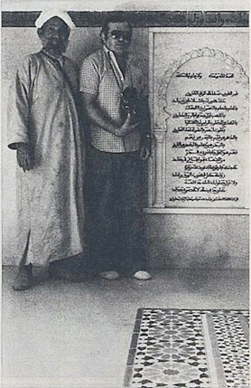 El guardian del templete con Antonio Ramos, junto a la tumba de Al-Motamid