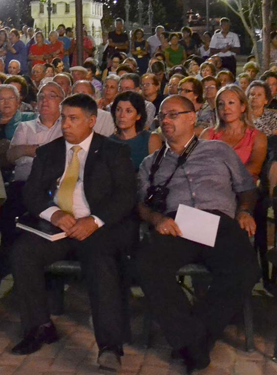 Tras la actuación musical se inició el ofrecimiento histórico por parte de Andrés García Maldonado, en su triple calidad de Hijo Predilecto de Alhama, presidente del Patronato de Estudios alhameños y presidente de la Asociación de la Prensa de Málaga.