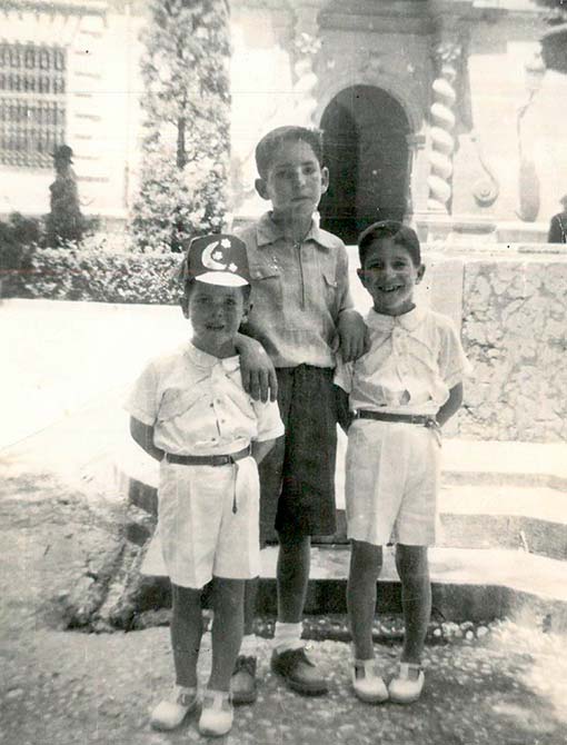 La de los tres hermanos en Granada.- Ya la llegada la Feria del Corpus de Granada -en ocasiones cercana a la de San Juan de Alhama-, a la que solía llevarnos nuestro padre cuando se celebraba en el Salón, junto a donde la "Alsina" tenía muy cerca su estación. Él es quien se encuentra con la cámara que realizó esta fotografía y esto ya nos hacía sentir que el verano estaba presente de hecho. En la fotografía mi hermano Juan Manuel, Juan Manuel Brazam, quien ya le daba satisfacciones a mis padres por sus avances en el dibujo y la pintura; Félix Luis, que que las daba por su inteligencia privilegiada y excelente comportamiento, y yo, "militarizado" -¡qué me gustaban las espadas y los fusiles como juguetes!-, que si se las daba creo que era por ser el benjamín de la casa, bueno, algo más cuentan. León Felipe, que algún año atrás se había hecho famoso por su "travesuras", ya andaría más detrás de alguna chica que para esto de subirse en "los caballitos".