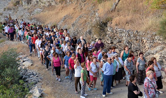Las puertas del convento permanecieron abiertas todo el día para que se pudiera visitar la imagen a cualquier hora. Sorprendida, porque durante toda la mañana y tarde fueron numerosas personas las que fueron a visitarla. Mujeres impedidas con sus cuidadoras, que daban las gracias por haberla subido, ya que ellas por su edad y circunstancias no podían visitarla en los tajos, muchachas jóvenes, matrimonios que están hospedados en el Balneario, se hacían fotos y me contaban sus experiencias.