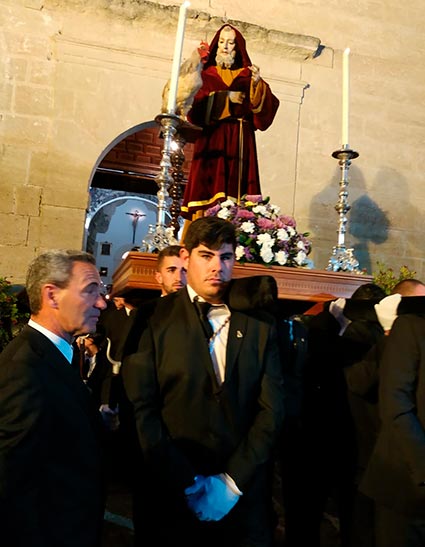 A las siete y media comenzó el Vía Crucis, con la salida de imágenes y su respectiva cofradía –después de rezar una estación en la plaza del Carmen y bendición con incienso de la misma por el párroco– para hacer el recorrido procesional, acompañada de sacerdotes de otras localidades, autoridades de Alhama y de policía municipal por calle Llana, Plaza de los Presos, paseo y vuelta de cada una de nuevo al templo.