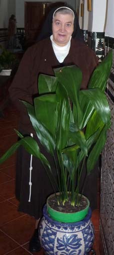 Ingresa en el Convento el 9 de abril de 1953. Había entonces doce hermanas; dice que un gentío del pueblo la acompañó a su destino y que fue tal la multitud que hasta una persona llegó a partirse una pierna entre empujones y avalanchas. Recuerda a las amigas de su edad, muchas, especialmente a Socorrito Vargas (que por ciertos, fui mi catequista), Maruja Benavides…Yo era muy alegre y me gustaba mucho la calle. Tanto era así, que cuando decidí ser monja, me echaban ocho días y llevo casi sesenta años. Yo me lo planteaba, sentía, como en el fondo, que Dios me llamaba. Y llegó un día en que descubrí que realmente me quería. Primero pensé ser Hermanita de los Pobres, pero cuando restauraron el convento y conocí a las monjas, y la vida que llevaban vida… Entré el 9 de abril aquí al convento y estoy feliz, realizada plenamente. Entregué mi vida por Dios, para el servicio de Dios y para bien de los hermanos. Mi fin era llevar todos los problemas al Señor para que se vayan remediando”.