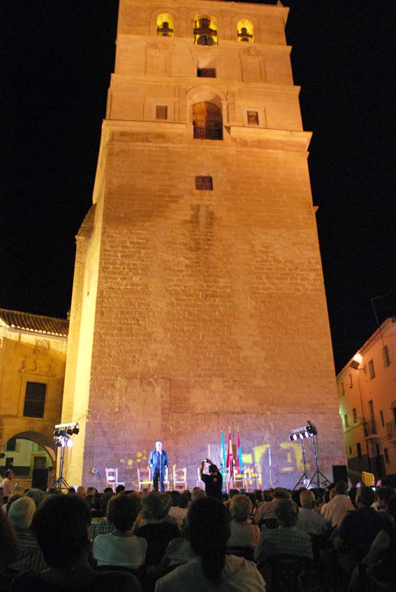 Tras este acto que estuvo presidido por el alcalde por el alcalde de Alhama y que contó con la presencia de la diputada delegada de Centros Sociales y Nuevas Tecnologías, Rosa Fuentes, y del concejal de Cultura, Ángel Muñoz, se dirigió a la plaza de los Presos, lugar elegido por el presidente del Patronato de Estudios Alhameños, Andrés García Maldonado, para celebrar, como las primeras ediciones, la XVI Velada de los Romances. Al pie de la majestuosa torre de la iglesia parroquial de la Encarnación volvería a destacar con ironía su experiencia en romances, pues no en vano durante años fue redactor jefe de la revista “¡Hola!”. A continuación disfrutaría, al igual que los varios centenares de personas que asistieron a esta velada de la doble actuación musical. Si el grupo de cuerda “Los amigos de la púa de Zafarraya” pusieron la nota popular e hicieron viajar musicalmente por la geografía española y granadina, gracias a sus interpretaciones de temas canarios y alpujarreños, los integrantes de “Clamores Antiqui” harían viajar en el tiempo a cinco siglos atrás con su interpretación y recitado de romances fronterizos, entre ellos, lógicamente el “Ay de mi Alhama!.